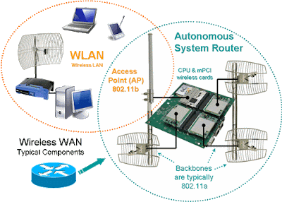 Special software protocols have been created to support routing within communication sub-system of a WAN. These protocols operate with ‘smart’ algorithms that can adapt the flow of network traffic when problems occur. Protocols such as Border Gateway Protocol (BGP) are widely used across the Internet today and this is the primary protocol used on the Air-Stream Wireless network.