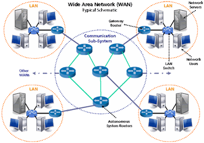 A Wide Area Network (WAN) is a network that spans a large geographical area, the most common example being the Internet the largest known WAN today. Typically, a WAN consists of two or more Local Area Networks (LANs) connected by a communication sub-system, which usually comprised of Autonomous System (AS) routers.